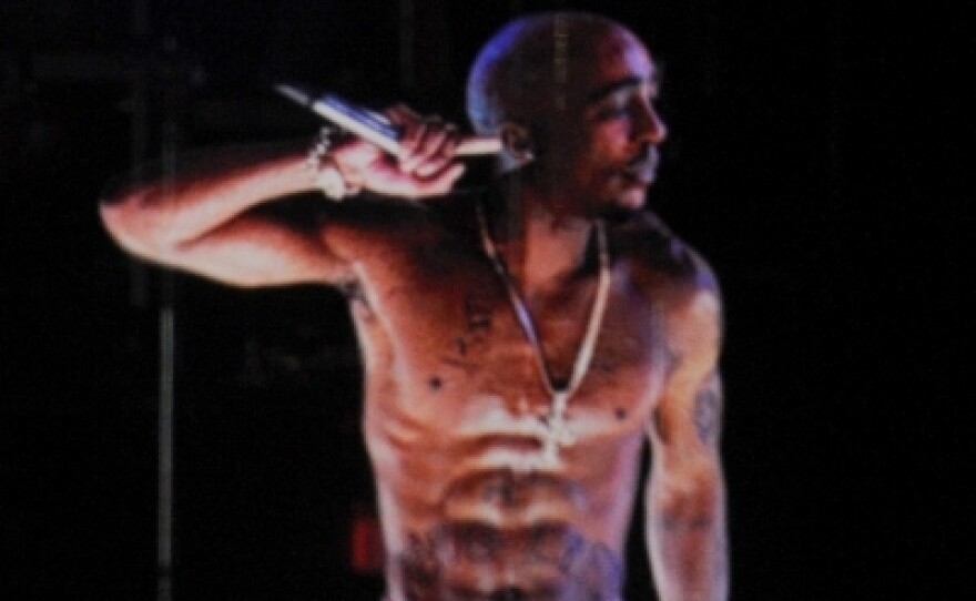 Nothin' but a gangsta party at Coachella this past Sunday and guess who was invited? A hologram of dead rapper Tupac Shakur. He/It performed - shirtless (hologram abs are just as impressive) and tattooed - with the very much alive Dr. Dre and Snoop Dogg.