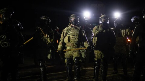 A line of federal immigration agents and protesters stand-off near the Glass House Farms facility outside Camarillo on July 10, 2025. Protesters gathered after federal agents conducted an immigration raid earlier in the day./Larry ValenzuelaPresident Trump focused on California first as his administration rolled out its crackdown on unauthorized immigration, sending the National Guard to Los Angeles and carrying out high profile raids throughout the state. -