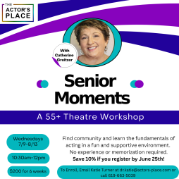 Catherine Greitzer is thrilled to teach her first class with The Actor’s Place! She earned her Masters degree and graduated from the American Academy of Dramatic Arts focusing on Theater Arts, costuming and stage makeup. She was a founding member of the PACT Theatre out of New York and Gross National Product Comedy team in Washington DC. She's been a director, actress, production and administrative assistant and an active member of advisory boards. (Somewhere along the line she also earned her MA in Teaching ESL!) Bringing new projects to theatre companies, Catherine has acted as producer, director and Assistant to the Playwright for the award-winning show, "Pushcart Tony" in Chicago. On the West Coast, Catherine has written reviews for several productions including for Carlsbad's New Village Arts. Ms. Greitzer has acted and directed at Oceanside's Brooks Theatre as well as with Fallbrook's Senior Theatre, "AGE Upon Stage." Catherine is SO happy to continue working with adults at FSA's "Readers Theatre" and after school with teens in "ACT UP! A Teen Drama Club."