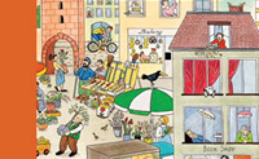 As young readers pore over the illustrations, they'll find themselves making up stories about everyone and everything they see before them. And because there's so much happening on each page (a kindergarten is being built, a woman runs to catch her bus, a group of children visits a natural history museum, a nun loses hold of a penguin balloon, the wind turns an umbrella inside out, a little girl practices the piano), this is an endlessly fascinating book that changes in content every time you share it with a child. Children notice something different and "write" a new tale each time they pick the book up. The colorful, busy drawings may remind some readers of the Where's Waldo series by Martin Handford (another favorite of mine to share with young readers) or the always-popular Richard Scarry titles.