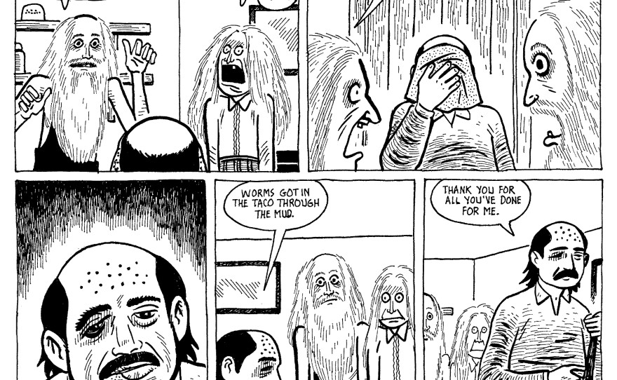 Gilbert Hernandez's Julio's Day might be read as an illustration of the above quotation from Beckett's play, and of the words that follow it: "They give birth astride a grave, the light gleams an instant, then it's night once more." The graphic novel begins with a panel of darkness, nothingness, but by the second panel we've pulled back far enough to see that the darkness is the inside of a baby's mouth. The baby is Julio, and we'll stay with him and his family for exactly one hundred pages as he grows from zero to the ripe old age of one hundred and then dies. We'll leave him in the same way as we first met him, but in reverse order: the second to the last panel offers an old man's ravaged mouth, followed by a final panel of darkness, nothingness.