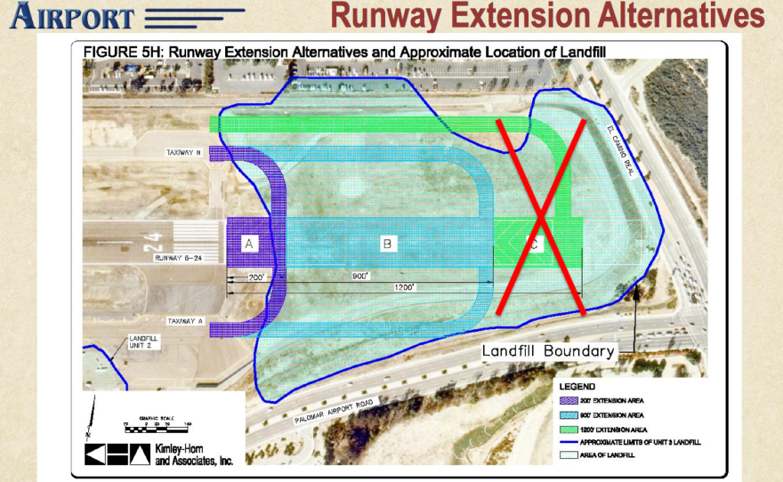 The expansion would extend the runway east by 900 feet over an old landfill, allowing corporate jets to fly from Carlsbad non-stop to the east coast and China.