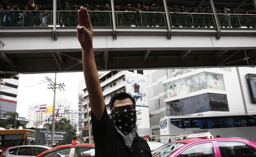 Opponents of last month's coup in Thailand have adopted the three-finger salute from The Hunger Games movies and books as their symbol of resistance to the military takeover. The protests so far have been relatively small. But they seem to be, well, catching fire.