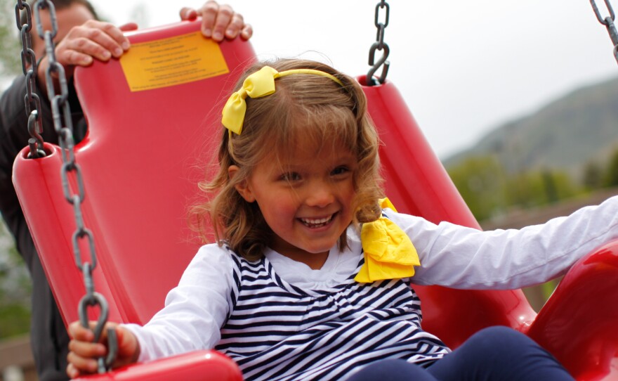 There are lots of design innovations: Broad, flat ramps that can accommodate wheelchairs or walkers to get to the top of play structures. Sand tables at wheelchair height. Large swings with back rests and straps for kids who don't sit unassisted. "Cozy spots" for children who need time out from all the distraction and noise.