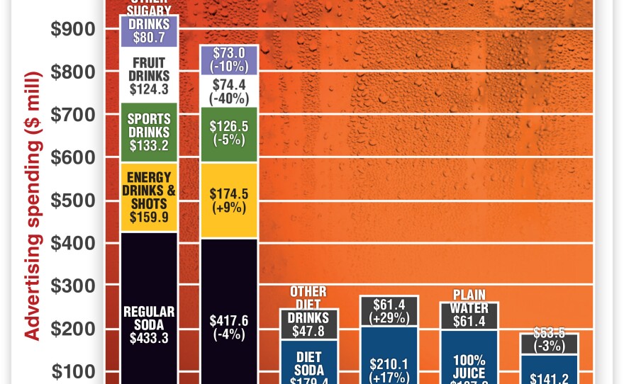 Among the most startling findings: Black children and teens saw more than twice as many ads for sugary drinks and energy drinks on TV compared with white children and teens in 2013. That gap has increased since 2010 since in those three years advertising to white youth declined faster than advertising to black youth.