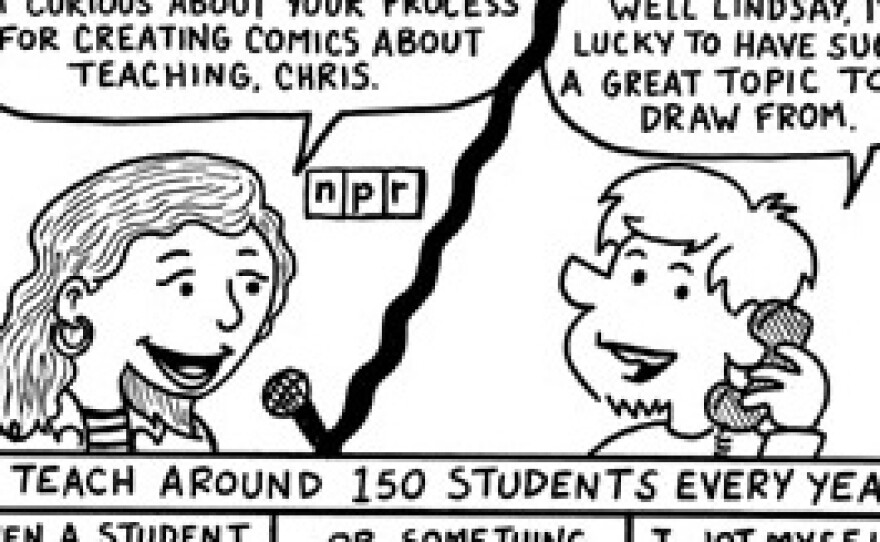 But committing to teaching didn't mean he'd abandon comics — in fact he seems intent on meshing his two passions. He says his students enjoy participating in the project and aren't shy about starring in his comics. (For the record, he always asks students' permission before drawing a character in their likeness).