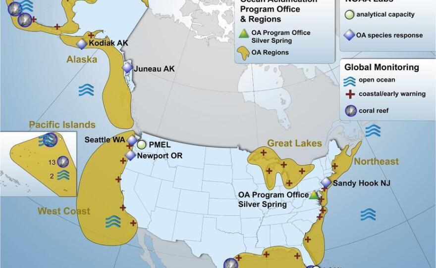 The study is billed as the first analysis of how shellfisheries in 15 states in the U.S. are likely to fare as this acidification continues. With 17 authors from 13 academic, government and environmental institutions, it examines not just ocean chemistry but local coastal pollution and how that combines with acidification.