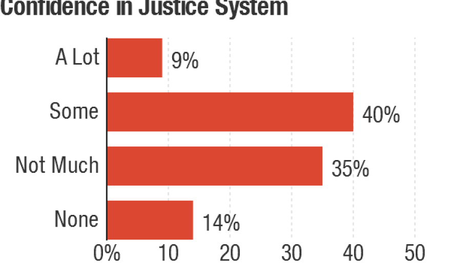 When asked how confident they are in the judicial system's "ability to fairly judge people without bias for race and ethnicity," 49 percent answered that they have "not much" or no confidence. Respondents were also split on their support of protests following police killings of black men in Ferguson, Mo., and New York. (The survey was conducted before recent protests in Baltimore.) Eighty percent support requiring police to wear body cameras.