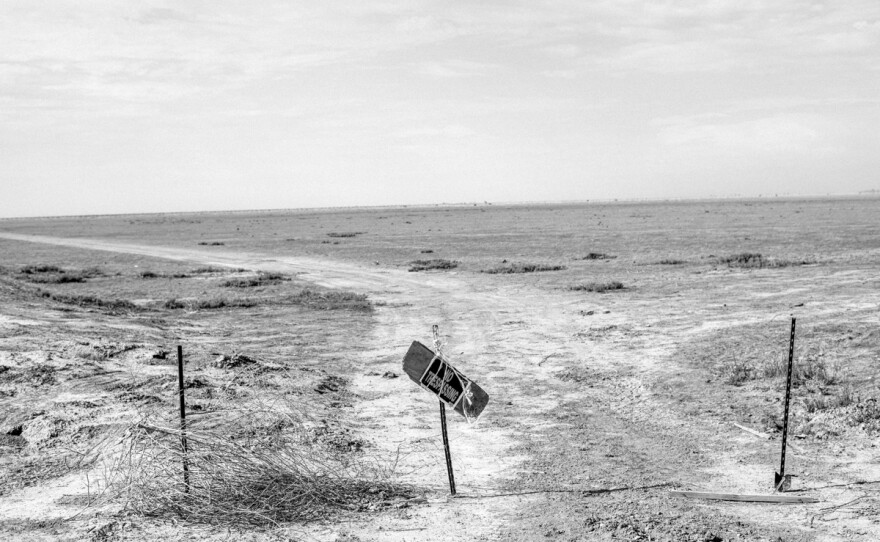 His images show a region covered with dust and tumbleweeds. "It strikes you kind of at a very visceral level to go to a place that not too many years ago was green and lush and full of food," he says. "This landscape has been humbled."