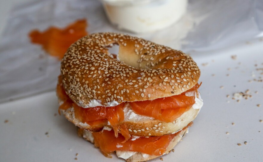 By creating two levels of cream cheese and lox, we've improved their ratios to the bagel. And by slicing along Mobius strips, we've created something not only delicious, but also architecturally striking.