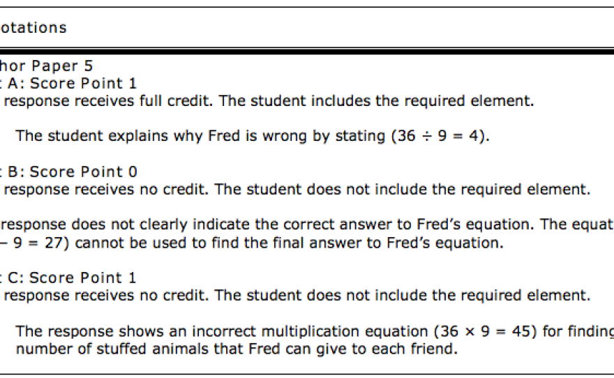 To do well on this one, students needed to do a lot. Pearson says this type of question, which tests for both reading and writing, is not a new concept. But it doesn't often show up on state tests. He says it should.