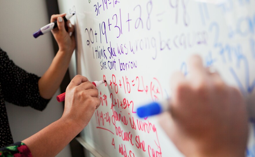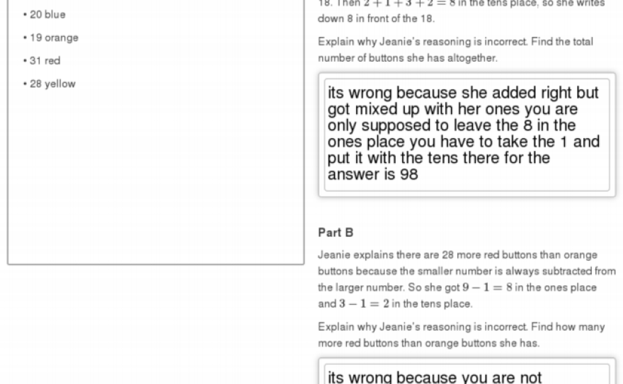 But Pearson says that a two-part question means one answer relies on the other. If a kid doesn't get Part A, then Part B won't make sense. That, in turn, might nudge the student to go back and revise their initial response. Once that happens, Pearson says, it's tough to know what the student did — and didn't — understand.