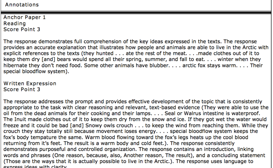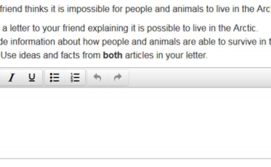 Pearson was an advisor for the other test consortium, Smarter Balanced, but he says he hasn't warmed up to these types of questions on that test either. Speaking of feeling cold, let's move on to the Arctic, or at least, an essay prompt about it: