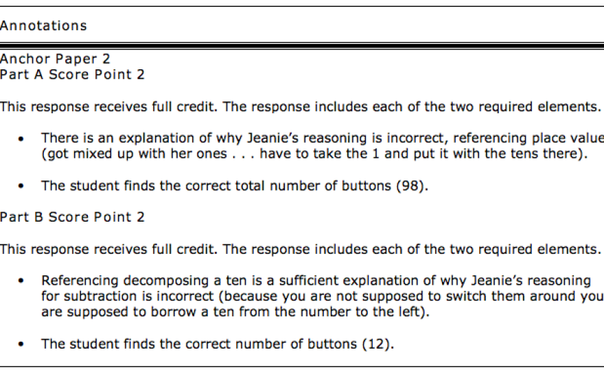 And here is PARCC's guidance on how the student's responses were scored. Notice, the test-taker received full credit for Part A, though the explanation included not a word of text.