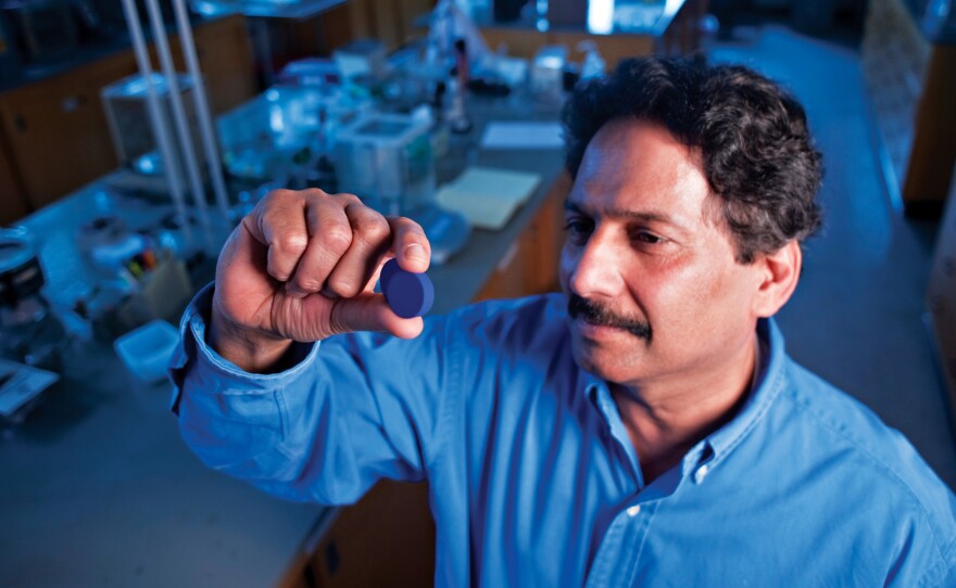 Mas Subramanian wasn't at all interested in this problem. In the department of chemistry at Oregon State University, he was looking for materials with novel magnetic properties to use in advanced computer hard drives. He would mix up likely chemicals and bake them in a furnace at 2,000 degrees Farenheit. But when he added manganese oxide to the recipe, he got a colorful surprise — a pile of bright blue powder.