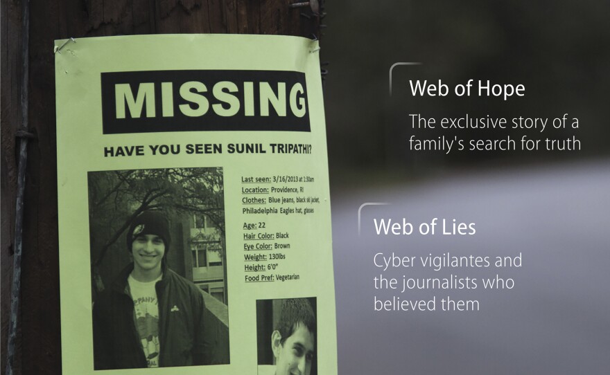 Three days after the bombing, the FBI released photos of the suspects. On Twitter, a former classmate of Sunil said she thought one of the suspects looked like him. That was picked up by reddit. And suddenly, the Tripathis' Facebook page was bombarded with hateful messages, many saying that, given his name and appearance, Sunil must be a Muslim terrorist.