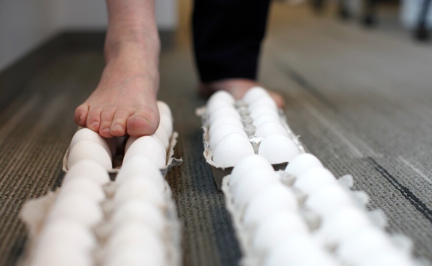 The old phrase "walking on eggshells" actually gives the honest egg a bad rap. Eggs are domes, and domes are among the strongest structures in the natural world. Joe Palca and intern Madeline Sofia demonstrate the strength of the egg in this video installment of "Joe's Big Idea." Watch and marvel as the eggs withstand a gallon of water, bowling balls and ... Joe himself? Take a look to learn about what gives frail eggshells their strength!