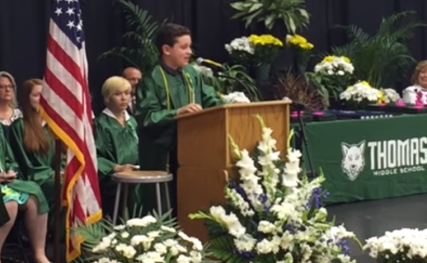 Maybe we're all just taking politics too seriously these days. Eighth grader Jack Aiello used his 8-minute graduation speech to impersonate Donald Trump, Ted Cruz, President Obama, Hillary Clinton and Bernie Sanders.