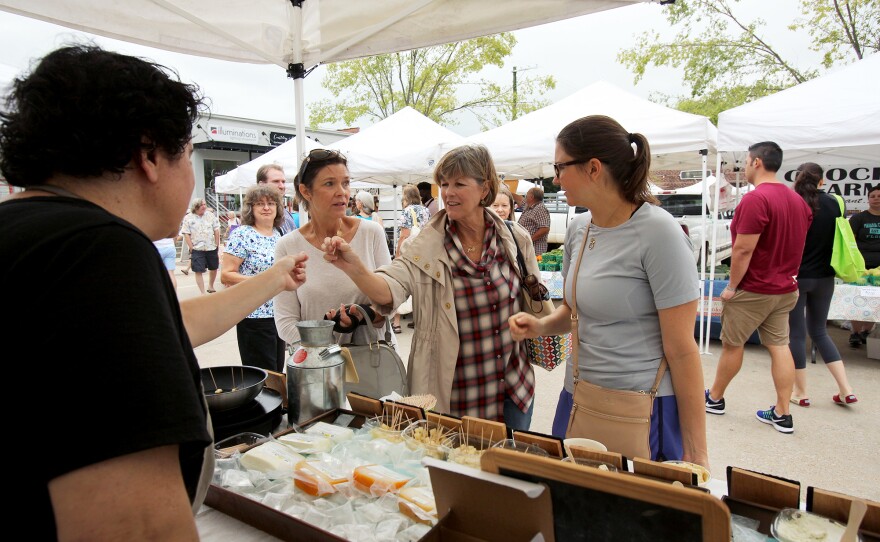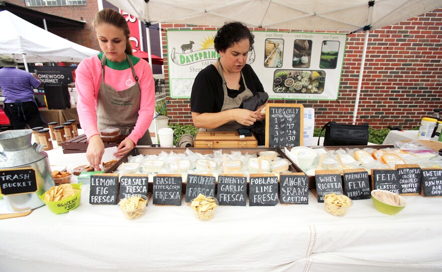 Business is brisk, even on an overcast Saturday. Repeat customers stop by to purchase, chat and sample a new cheese, as do curious first-timers.