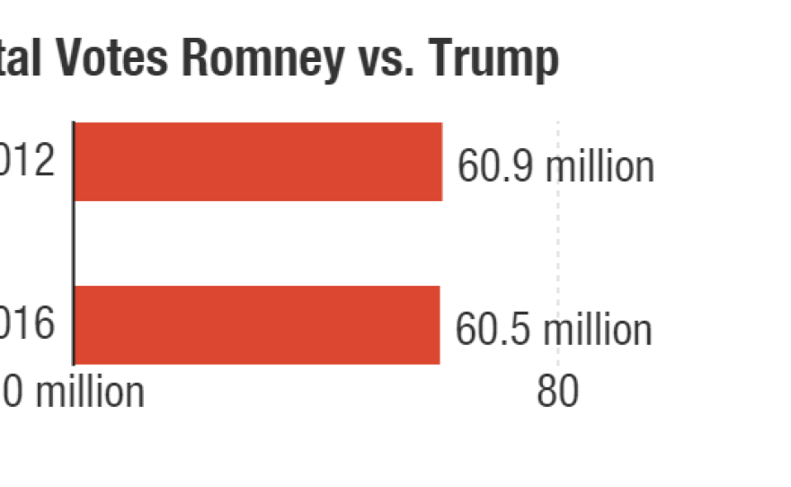 Trump, meanwhile, got roughly the same number of voters as Mitt Romney four years ago: