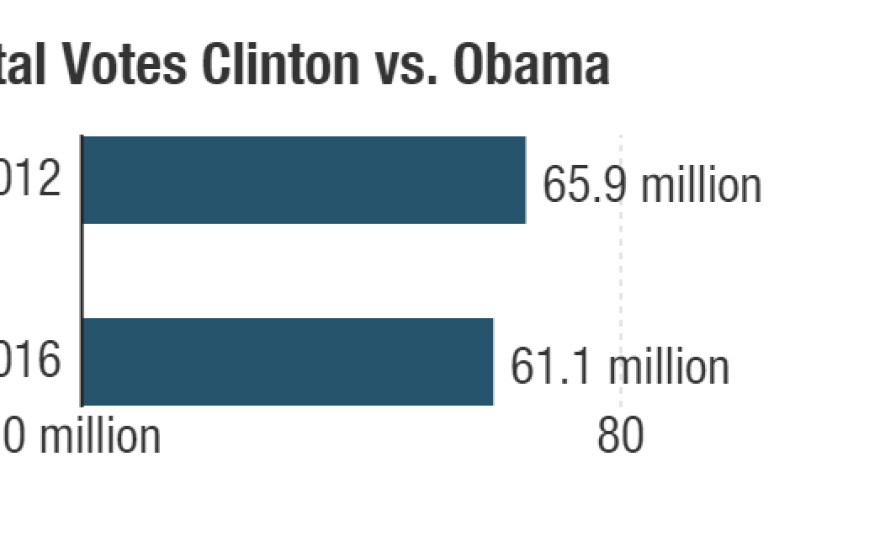 Clinton got nearly 5 million fewer votes overall than Obama: