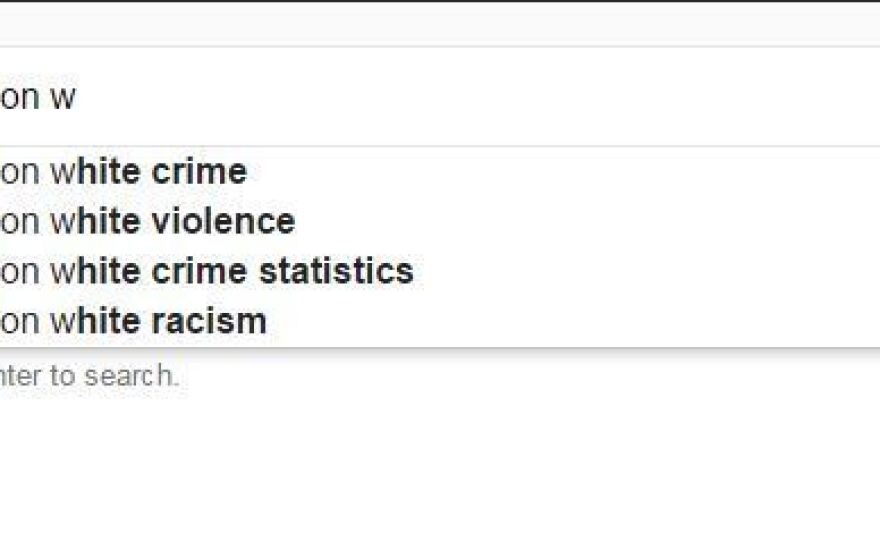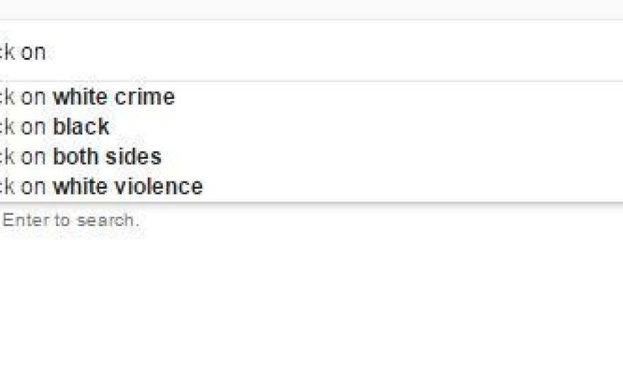 But he didn't necessarily have to type all the letters in the search term, "b-l-a-c-k o-n w-h-i-t-e c-r-i-m-e." NPR googled that phrase in December 2016 and January 2017, and found the letters "b-l-a-c-k o-n" elicited this top autocompleted suggestion: "black on white crime."