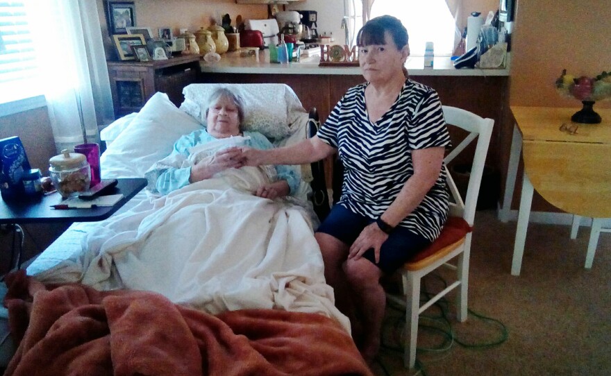 Kathy Pugh, daughter and caregiver for her mother, Evelyn March, 85, of Pinckney, Mich.