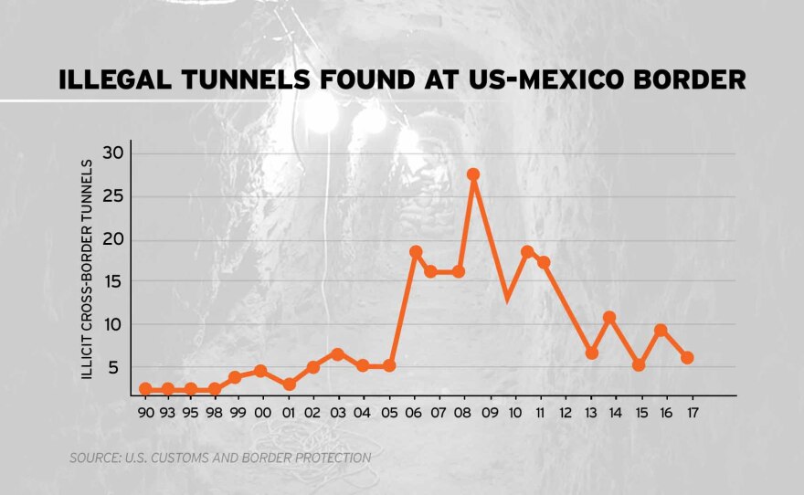 Government records obtained by KPBS show that the number of illegal cross-border tunnels found spiked between 2006 and 2012, during record border fence construction.