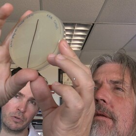 The scientists measure their success by holding up the Petri dishes to daylight streaming in from large windows in the lab. With this method they can see a clearing, indicating where the phages have killed a specific species of bacteria. The cloudy areas are where the bacteria are still growing abundantly.