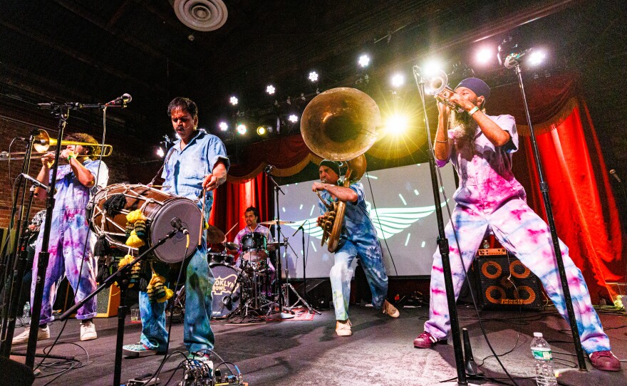 Punjabi dhol drummer Sunny Jain is the mastermind behind one of America's most intoxicating live brass bands. He seamlessly blends jazz, funk, ska, hip-hop — even punk music — with a wide range of folkloric music from his ancestral homeland, India. The banging and jumping set takes off at The Hamilton Live, just steps away from the White House in Washington, D.C.