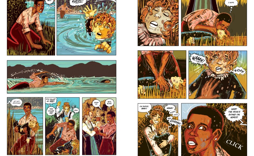 To visually differentiate the time periods in which Butler set the story, Jennings used muted colors for the present and vibrant ones for the past. "In a sense, she was trying to state how slavery and the remnants of it and the relevance actually, too, are still with us today, and they still sit with us. Dana becomes really comfortable with being in that space and that's really disturbing," Jennings said.