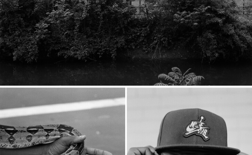 A pool of light on asphalt, the dangling Jordans of a boy on a tree limb, a police officer from the shoulders down, his right hand resting on his holstered gun. Thompson's photos pose a truncated perspective of Spring Valley, N.Y., the New York City suburb where he came of age. The frames shy from literal views of change — Thompson intends to leave the big picture incomplete.