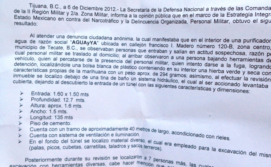 The Tecate tunnel's exit into the United States had not yet been completed.