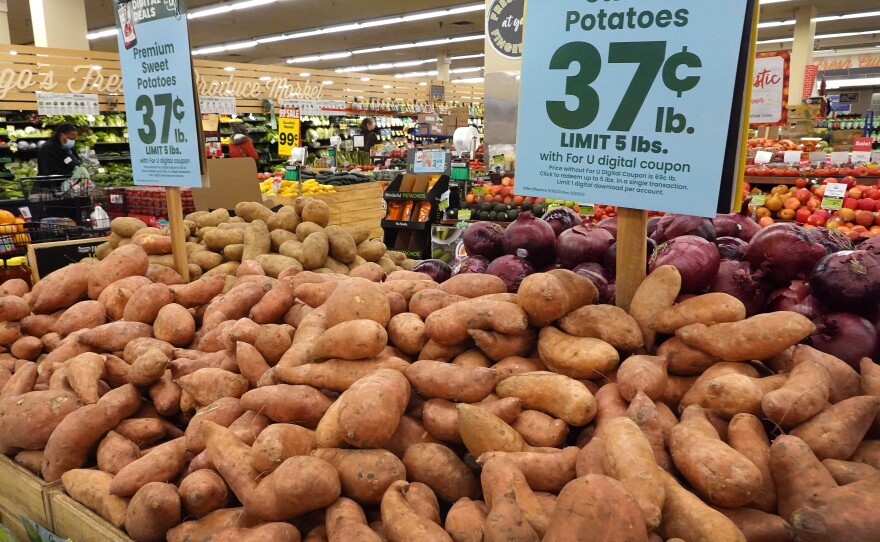 Sweet potato prices are slightly higher than last year. And pumpkin pie filling is also more expensive.
