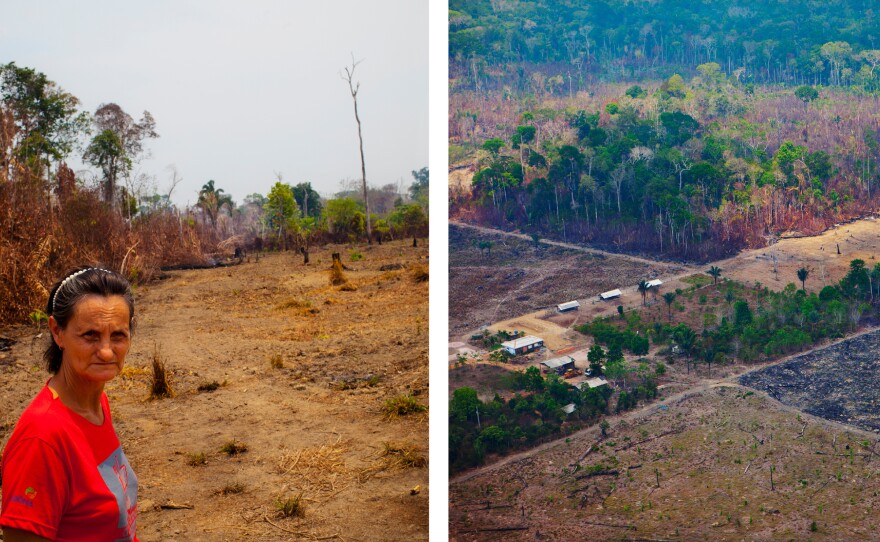 She calls her purple home "the house at the end of the world." She lives in an isolated community of small farms on the edge of the forest. She says you have two choices in the Amazon: "You either burn or you starve."