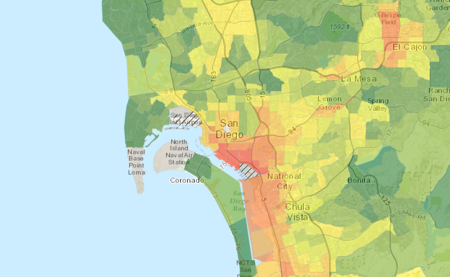 National City, Chula Vista and El Cajon also face higher than normal risks from pollution.
