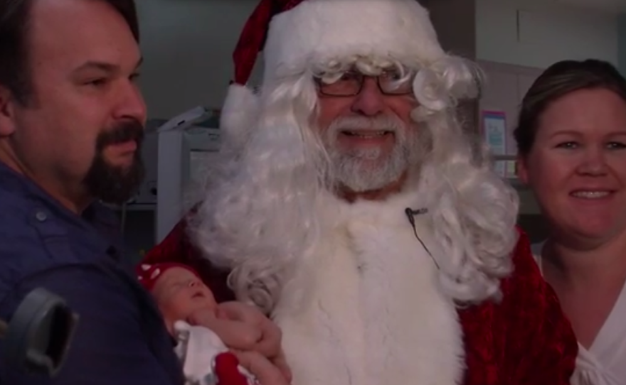 But in time, Santa made the rounds and spent a few moments with the families and their new infants.