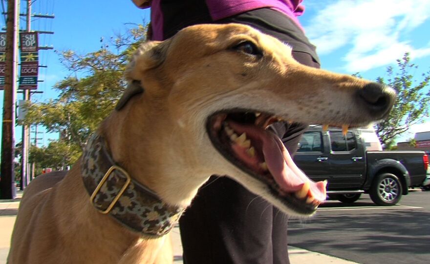 Hillcrest resident Stephanie Thompson likes to bring her 8-year-old greyhound Lola with her wherever she goes, including into restaurants, coffee shops, even stores in the Fashion Valley Mall.