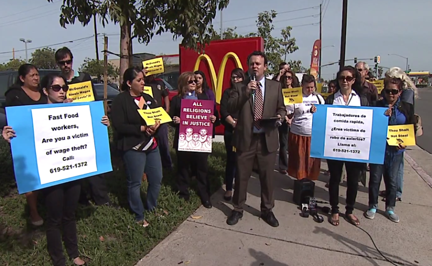 The suits were filed in California, Michigan and New York. A study from the San Diego Center on Policy initiatives says the average fast food worker in San Diego earns about $300 a week.