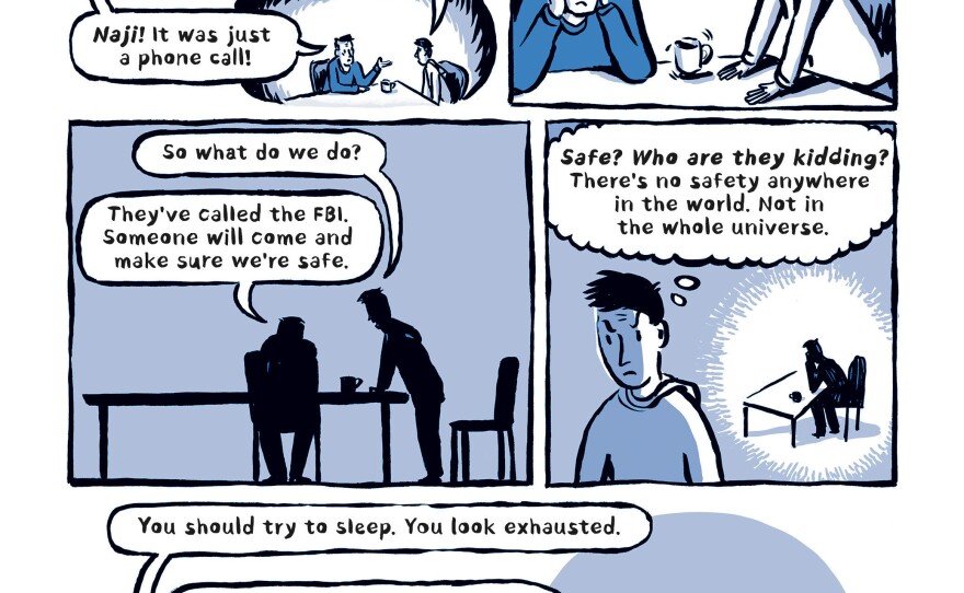 Naji's family did seek a better life in the U.S. But not long after they arrived in 2016, they got a death threat on their voicemail — "America is only for white people... you have 24 hours to leave the United States or I will chop your head off." Ibrahim, the dad, called their co-sponsor, who called the police, who called in the FBI. They were taking it very seriously. But Naji still felt that he needed to do more.