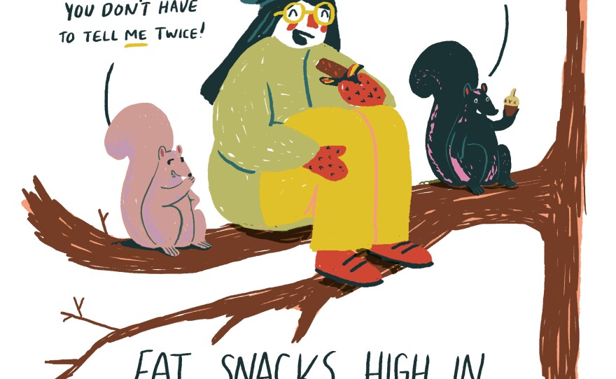 "You want something high in fat, calories and protein," she explains. "If you want a Snickers bar, now is your chance to eat a Snickers bar."