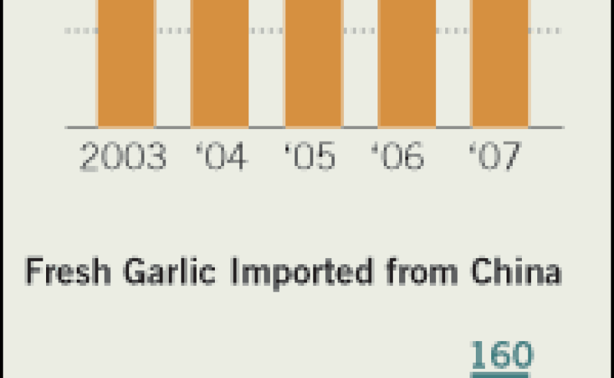 With more than a billion mouths of its own to feed, China has not been a major exporter of human food to the U.S. But one item in the grocery store that is likely to come from China is garlic. That's worrisome to the California town that has become synonymous with the pungent plant.