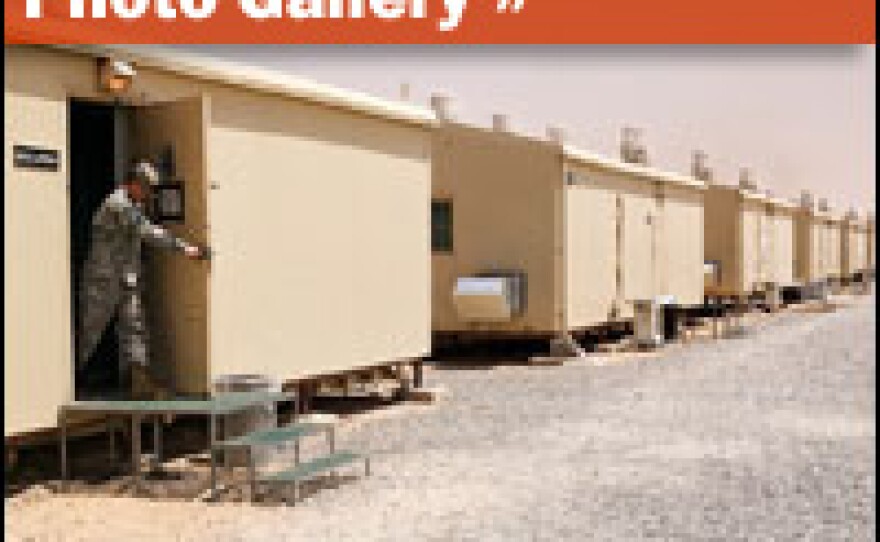 "I thought that was hilarious," Featherstone says. After that, he says, the hunt for bathroom graffiti was a contest to fill time. He and colleagues can be stranded at these transition bases, left to do what war reporters do best: waiting and watching. "A lot of it is sort of profane backtalk," he says.
