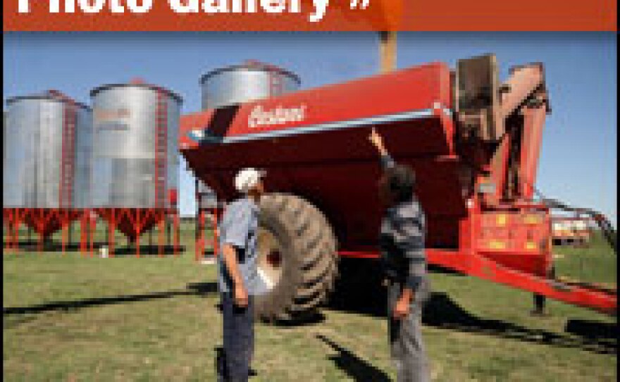 As in Iowa, this farm's muscle is grain. It's harvested and pumped onto trucks, then shipped to the rest of the world.