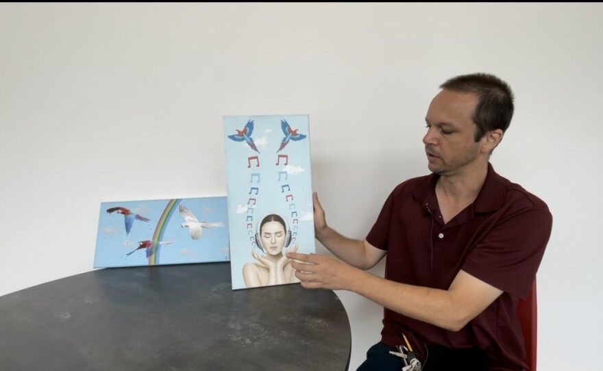 His main source of income is from working with children with autism, but in his free time, he draws and paints.