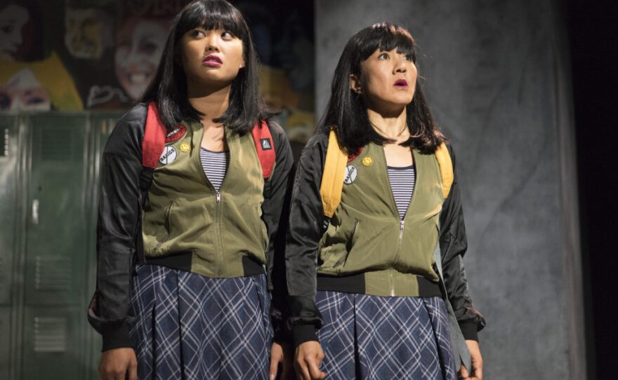 Moxie Theatre strives to showcase female playwrights and plays with dynamic women characters. Its current production Peerless offers a re-imagining of Shakespeare's Macbeth. KPBS arts reporter Beth Accomando began her interview with actresses Dana Wing Laow And Jilldiscussing the curse of the Scottish Play that caused them to cancel a performance. We were supposed to have preview tonight. There was some flooding in the theater but there is a myth, anytime there is a production of the Scottish play, you should not say the name and theater, that things have happened. Do not say it. Do not sea for any production. Explain what is the connection between your play, peerless and Shakespeare's play? The playwright, she calls it on the Scottish play, the themes are similar, track it through four inhibition, and wanting the kingdom to be the top. Winner winner chicken dinner. Peerless, the name, you can say because these girls are set in high school, peers, they are both there appears a peerless but it comes from a line in the Scottish play. The Scottish man. [ LAUGHTER ] That is the connection. Give us a sense of what the actual storyline in this play is These satellite girls you know who are in a town, just so they are -- they put themselves in the situation so they can at the upper hand as far as getting into the school. The college. That they want to get into. When other circumstances come in and interfere with their plan, they find a way to eliminate the circumstances. Because they have a plant -- That is what they are focused on. From against the world, essentially. It interweaves a true life crime story with twin sisters how does that play into the story? The silent ones. June and Jennifer. They are from Wales. Their connection that they have, it is similar to ours where we kind of speak -- a different language, it's that expedited speech that we have. Did you see? I saw it. It was his baby fat. We regret to inform you -- It has been taken. They did not speak, they were more like clicks, chirps, sounds, they developed, after a while they stopped talking to people and they would talk to themselves this way. They would only talk to themselves, they were social outcast so to speak. They went on an arson rampage, I think, and eventually got committed to institutionalize. And they would be in separate cells, and creepy things would happen, nurses would find them in the exact same position at the exact same time in different cells, they would be catatonic without each other and with each other -- it was like they were fighting against each other. It was like they cannot live without each other but they cannot live with each other, and they wrote and wrote and wrote a bunch of diaries and all the information which this journalist found. What is it like playing twins? What things did you work on to make that relationship work on stage? We were lucky, we were actually real life friends -- real-life flat -- real-life friends. We were together all day. Like six days a week. We knew each other before, but big -- but we got pretty close, we were asked to leave for the show, we are excited, his beloved each other. But then I played her mother in the last play. I think it was good that we knew each other. And we had a personal relationship. Me, the script -- it is so great, It is so hard. If you do not know the person, developed, having our relationship, it would be difficult. The future. My future. Our future. You still can have one. Every year, they take one. My stats are impeccable. 4.8. How hard is it to get that dialogue down with finishing each other's sentences and getting that piece right? It was difficult to learn it. We had to be there to learn about yourself, it's not a regular script. This is how I memorize thing, I would be texting her, I cannot get this. You know? At some point I family -- it was not until we were here on stage together and saying these lines and then realizing how far we have to go through rehearsal sometimes. It is a beast. It's a good beast. What you hope audience will connect with us in this play? Sceme if you are theater nerd it will be fun for you -- If you are a theater nerd it will be fun for you. You can see connections with the Scottish play. Is a comedy until it is not. There is dark stuff in it that has, you know, this morbid humor so it would be fun for people who perhaps have gone to a live theater and no Shakespeare. If it's your first, it's fast, exciting, it's exhilarating, is like, what is happening? Just to see what can happen on stage with Peter, that's what I love about theater. We can make anything happen in the show. Was important, the language, to hear the language, and what is happening with the thought processes is really cool. This would have been our second preview. The first preview, hearing the audience, there were people in there who knew Shakespeare. You could tell we had moments with Shakespeare, you could -- You would hear Google's. -- You would hear giggles. Thank you. Speaking to the lead actresses of peerless.9 at Moxie Theatre on El Cajon Blvd