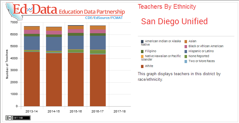 In 2014, San Diego Unified embarked on an effort to address the problem. It has worked more aggressively to recruit diverse teacher candidates, Thede said. Now it’s working at the front end of the pipeline, building a program that would bring more of its own graduates — who reflect the region’s diversity — into the teaching profession.