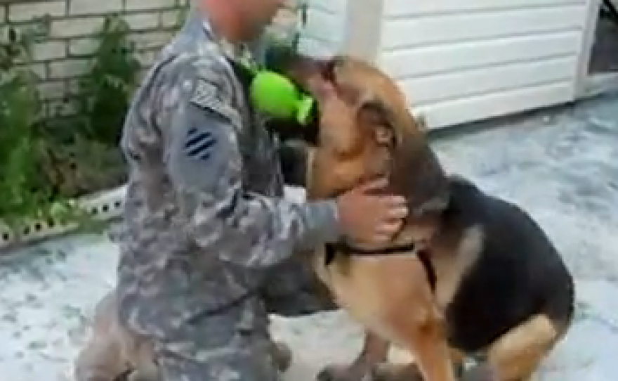 A game of fetch turns into a heartwarming reunion in this video of Ranger the German Shepherd discovering his deployed Army dad is finally home.