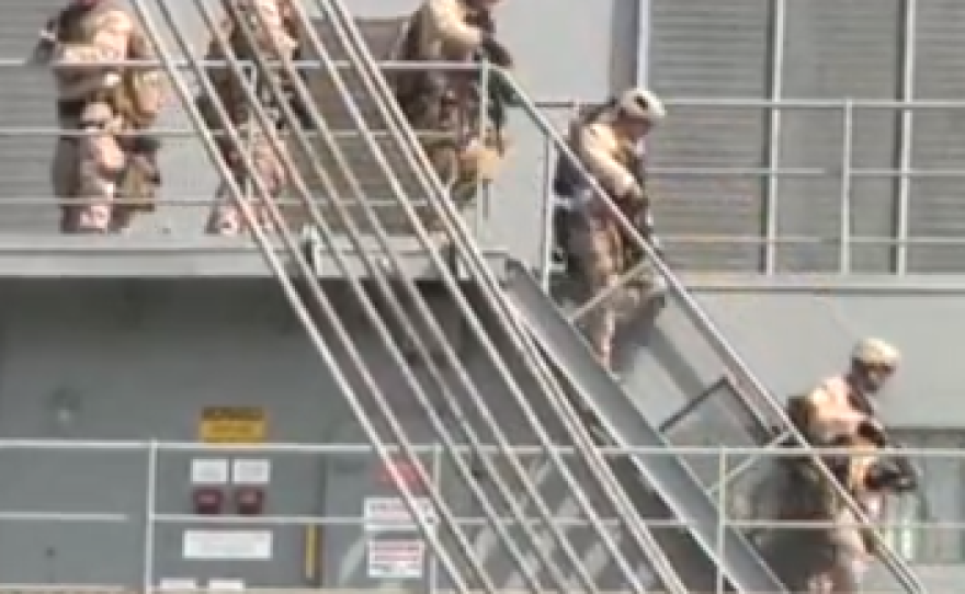 Some Marines landed on the deck of the SS Cape Inscription from helicopters hovering above the ship, according to the Associated Press, while others worked as snipers, monitoring their fellow Marines as they maneuvered their way through the maze of hallways inside the ship - as if it were a vessel that had just been hijacked by pirates.