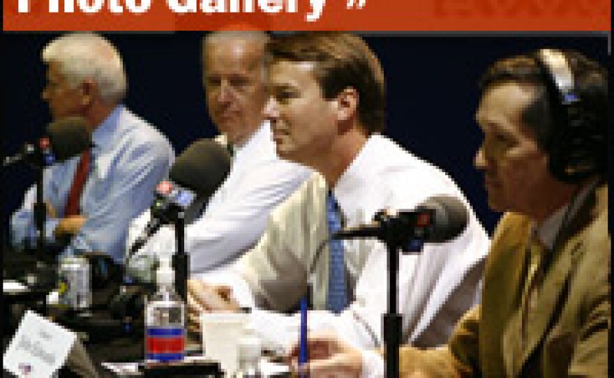 Democratic presidential candidates clashed over Iran, and tackled trade and immigration during a radio debate from Iowa on Tuesday. The forum, sponsored by NPR and Iowa Public Radio, comes just one month before the Iowa caucuses, at a time when polls show a tight three-way race among Sen. Barack Obama (IL), Sen. Hillary Clinton (NY) and former Sen. John Edwards (NC).